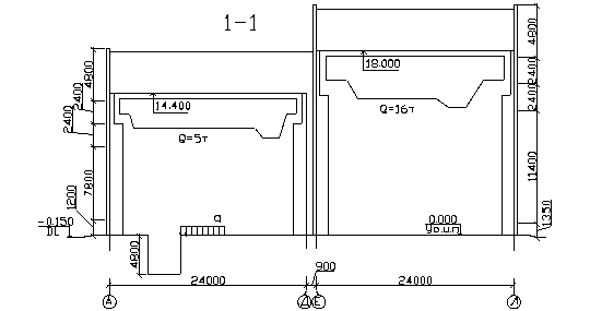 Железобетонные колонны основного каркаса имеют шарнирное сопряжение со стальными фермами, шаг колонн каркаса 12 м. Шаг стальных стоек фахверка 6 м.