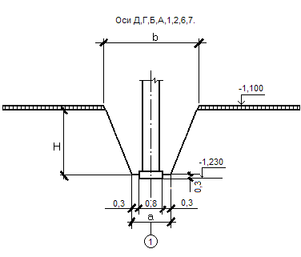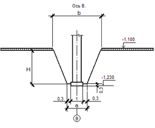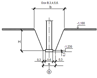 | Траншея по оси В. F= H= где 0,3-недобор грунта a= b= где m=0,25 при Н<1,5 м L= Траншеи по осям В,3,4,5,6. F= H= где 0,3-недобор грунта a= b= где m=0,25 при Н<1,5 м L= | ||||||||||||