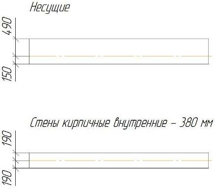 Стены наружные из керамического кирпича М 100 и утеплителя пенополистирола, внутренние также только без утеплителя. Толщина наружной стены 640 мм. Все внутренние стены приняты толщиной 380 мм. Перегородки кирпичные толщиной 120 мм.