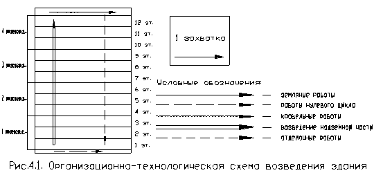 Возводимое здание имеет одну блок-секцию, которая принимается за захватку. То есть, количество захваток - 1.