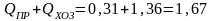 - суммарный удельный расход воды на хозяйственно-бытовые нужды, л;