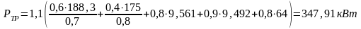 где - коэффициент потери мощности в сетях в зависимости от протяженности, сечения и др., равен 1,05…1,1;