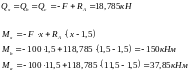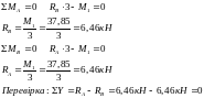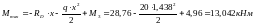 Оскільки епюра Q перетинає нульову лінію, то значення моменту в цій точці має максимальне значення. Знаходимо екстремум: