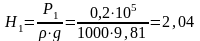 ρ – плотность жидкости, кг/м3; ρ = 1000 кг/м3;