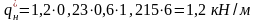 Расчетные погонные нагрузки на стойку рамы от активного давления и отсоса равны: