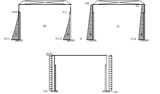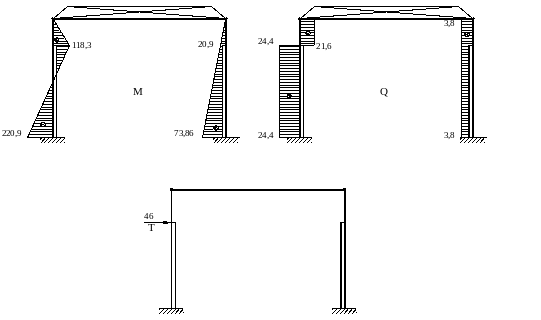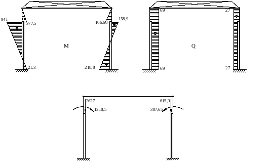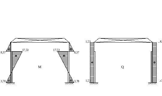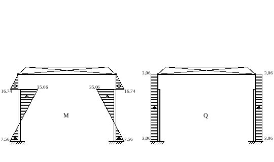 Определяем значения моментов в стойках рамы и строим эпюру.