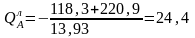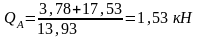 Поперечная сила в сечении 1–1 может быть определена как сумма опорных реакций