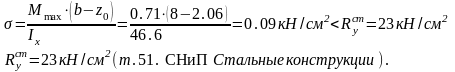 прочность клеевого шва по касательным напряжениям обеспечена с большим запасом прочности.
