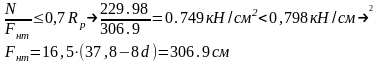 Проверка прочности клеевого шва в анкерном креплении колонны: