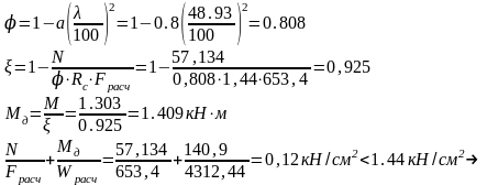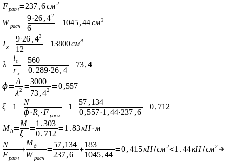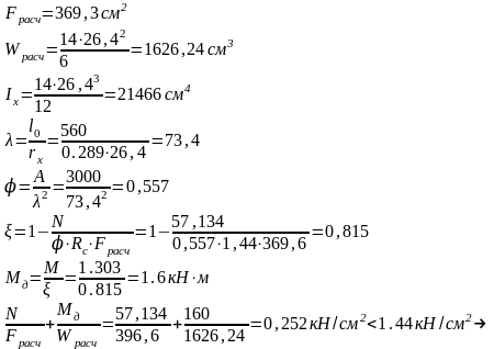 сечение больше уменьшать нельзя, прочность колонны обеспечена с большим коэффициентом запаса.