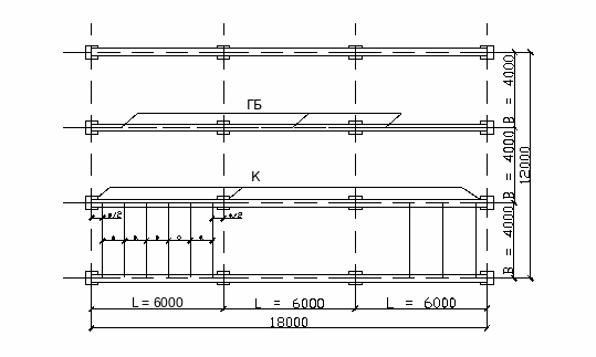 В - шаг колонн в поперечном направлении или пролет БН, или шаг ГБ