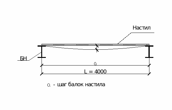 Примем 6 балок настила в одной ячейке и вычислим шаг балок настила: