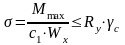 Определим требуемый момент сопротивления из условия прочности по нормальным напряжениям с учетом пластической работы материала: