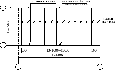 Схема расстановки балок настила показана на рисунке 2, а сопряжение балок – на рисунке 1а или 1б.