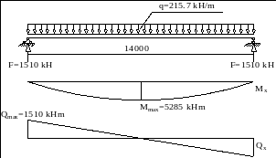 Рисунок 4 – Расчетная схема и усилия в главной балке