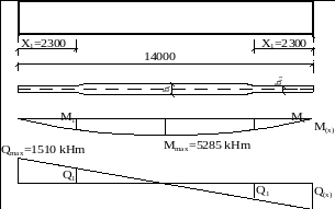 Принимаем место изменения сечения на расстоянии 2,3 м от опор, т.е. приблизительно 1/6l, как показано на рисунке 8.