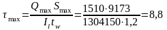 Проверка прочности опорного сечения на срез (по максимальным касательным напряжениям в точке В):