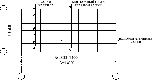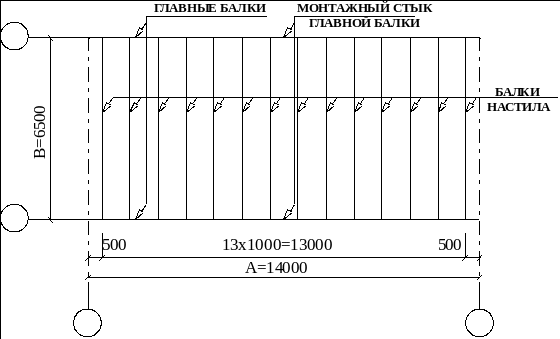 Схема расстановки балок настила показана на рисунке 2, а сопряжение балок – на рисунке 1а или 1б.