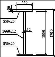 Находим толщину стенки пологая, что tf=2 cм, hw=h‑2 tf= -2·2= см