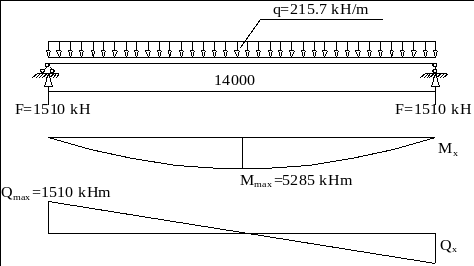 Рисунок 4 – Расчетная схема и усилия в главной балке