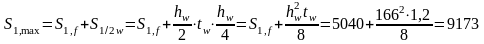 Наличие местных напряжений, действующих на стенку балки, требует проверки на совместное действие нормальных, касательных и местных напряжений в уровне поясного шва и под балкой настила по уменьшенному сечению вблизи места изменения ширины пояса. Так как под ближайшей балкой настила будет стоять ребро жесткости, которое воспринимает давление балок настила, передачи локального давления в этом месте на стенку не будет,