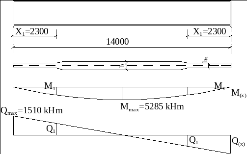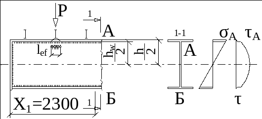 Рисунок 9 – К расчету балки в месте изменения сечения