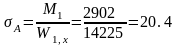 Поэтому приведенные напряжения проверяем в месте изменения сечения на грани стенки (точка Б), где они будут наибольшими: