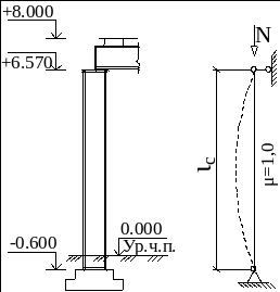 Геометрическая длина колонны равна отметке верха настила (из задания) за вычетом толщины настила tн, высоты балки настила и главной балки hг.б., с учетом выступающей части опорного ребра 2 см, заглубления колонны ниже отметки чистого пола на 0,6 м. с учетом μ=1 составляет