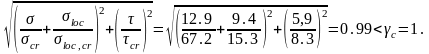 В отсеке №1 стенка работает в упругой стадии и проверка устойчивости выполняется по формуле