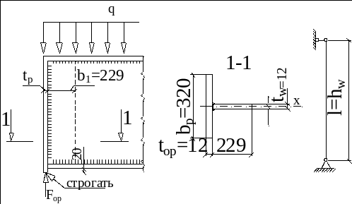 Ребро крепится к стенке полуавтоматической сваркой в углекислом газе сварочной проволокой Св‑08Г2С. Размер выступающей части опорного ребра принимаем 20 мм. Из условия смятия находим