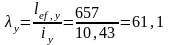 Гибкость колонны в обоих направлениях будет соответственно равна: