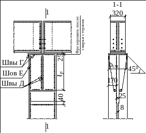 Местная устойчивость стенки стержня колонны обеспечена. Таким образом, подобранное сечение удовлетворяет требованиям общей и местной устойчивости и может быть выполнено с помощью автоматической сварки.