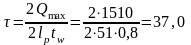 Принимаем tp = 25 мм. Длину ребра lр находим из расчета на срез швов Д его прикрепления. Примем kf =10 мм. Тогда
