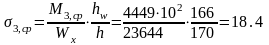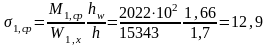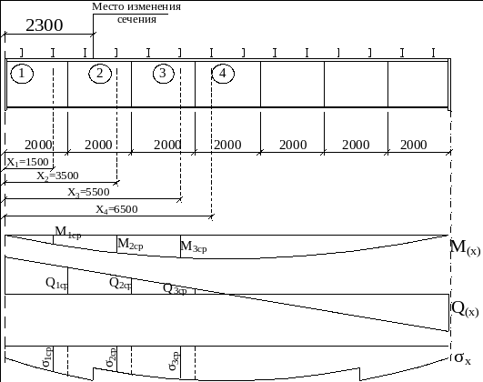 В отсеке №2 расположено место изменения сечения, поэтому эпюра х имеет скачок. Средние напряжения в пределах наиболее напряженного участка отсека (расчётного) длиной