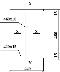 пояса – 2 листа 420×15 мм, площадью 2Af=2×42×1,5=126,0 см2