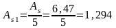 Из сортамента выбираем арматуру диаметром 12 мм с As1 = 1,313 см2 , тогда As = 5х1,313 =6,565 см2