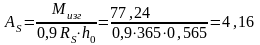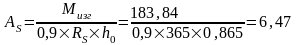 Из сортамента выбираем арматуру диаметром 12 мм с As1 = 1,313 см2 , тогда As = 5х1,313 = 6,565 см2
