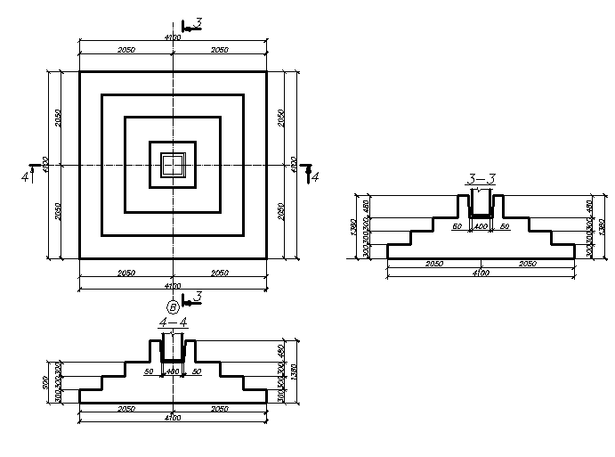 Вычисленные размеры фундамента в плане округляют в большую сторону до кратных 0,1м для, т.е. принимаем b = 4,1 м, а l = 4,1 м, соответственно