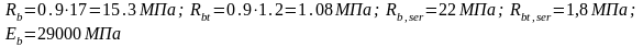 Бетон тяжелый класса В30 с расчетными характеристиками при коэффициенте условий работы