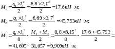 Изгибающие моменты в расчётных сечениях 1-1, 2-2, 3-3: