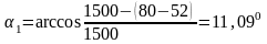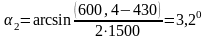 Угол скважины в точке 2: