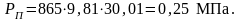 Определяем давление на участке подводного перехода Рп, МПа по формуле: