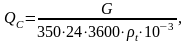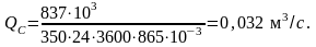 Определяем объёмный секундный расход Qc, м3/с по формуле: