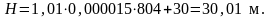 Δz - разность отметок конца и начала участка трубопровода, м, Δz=30 м.