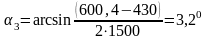 Угол скважины в точке 3: