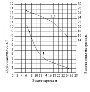 1,2 - кривая высоты подъема крюка на стреле.