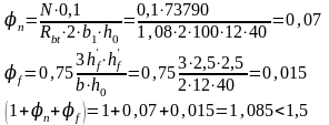(г=1,5 для таврового сечения с полкой в растянутой зоне).
