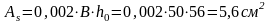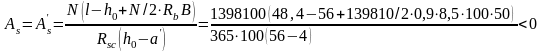 Площадь арматуры As = Aґs назначаем по конструктивным соображениям As =0,002; Вh0 = 0,002·50·56 = 5,6 см2. Принимаем 3 ш16 с Аs = 6,03 см2.