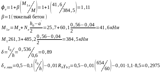 При расчете сечения на первую и вторую комбинации усилий расчетное сопротивление Rb следует вводить с коэффициентом гb2=1,1 , т.к. в комбинации включены постоянная, снеговая, крановая и ветровая нагрузки; на третью с коэффициентом гb2=0,9 (постоянная и снеговая). Расчет сечения выполняется по 1-й комбинации, как самой невыгодной.