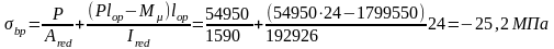 Напряжение в бетоне с учетом первых потерь